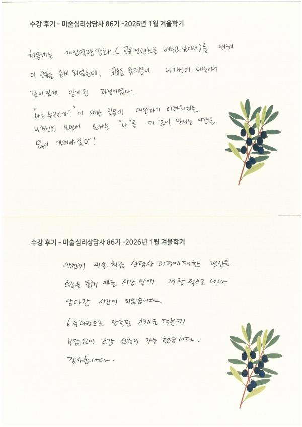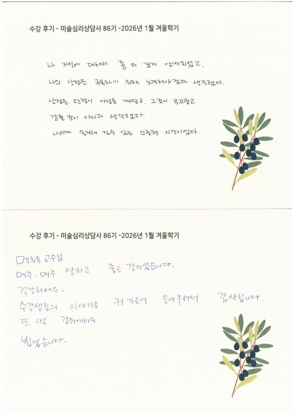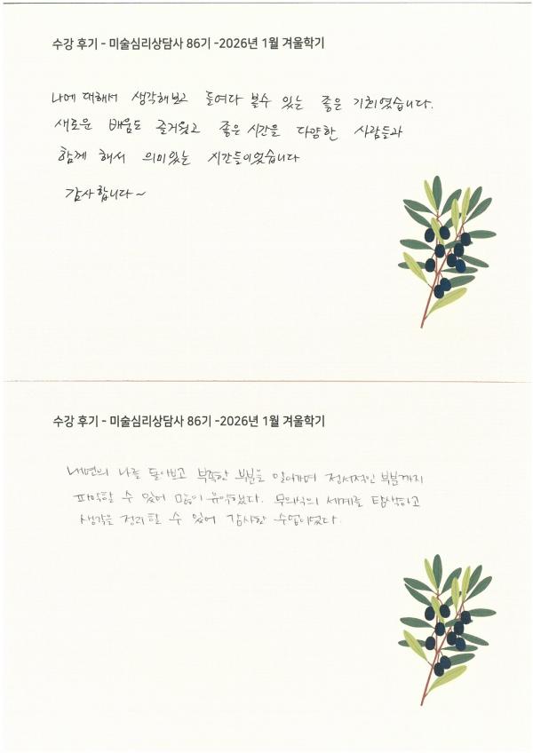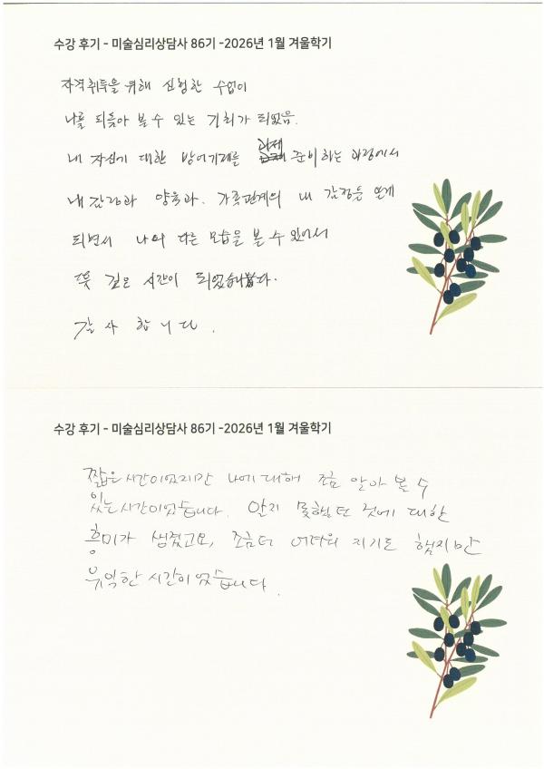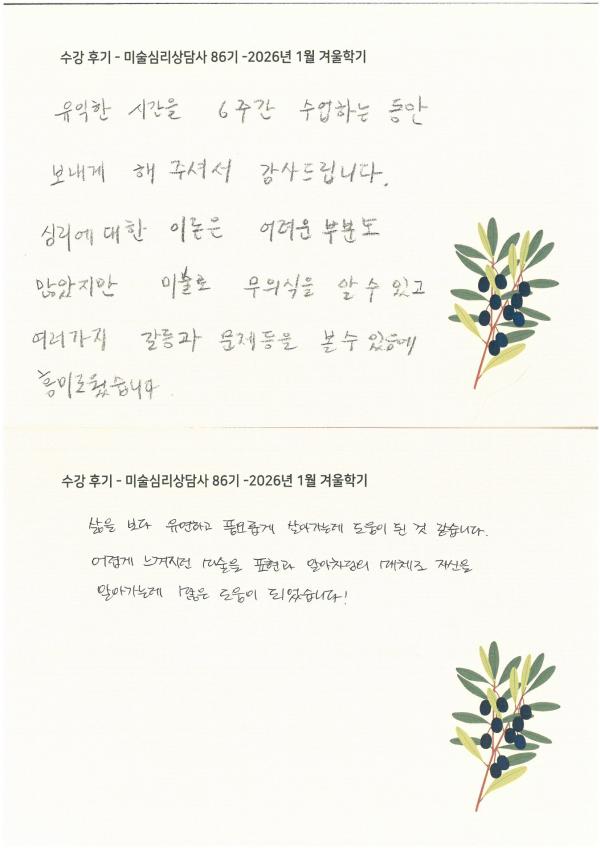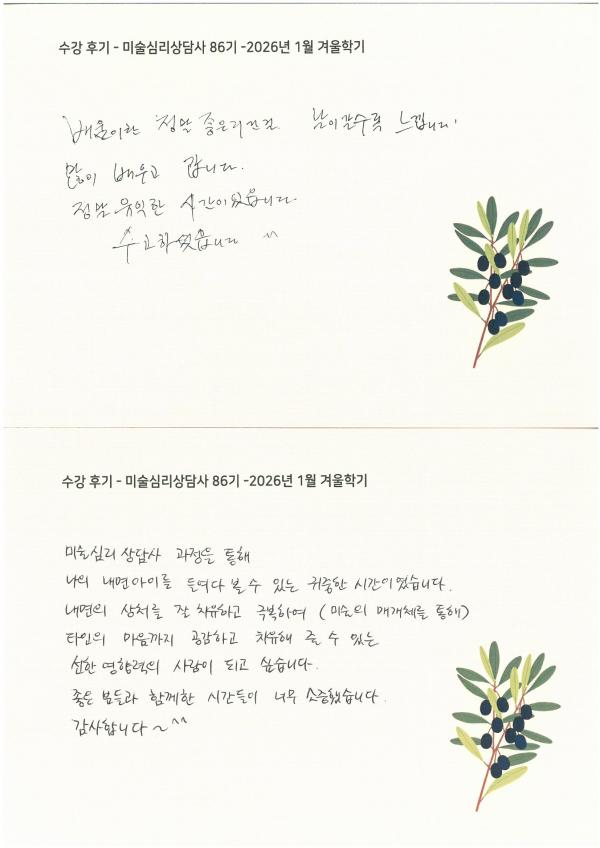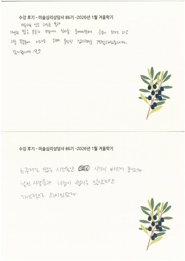 수강 후기 - 미술심리상담사 86기 2026년 1월 겨울학기