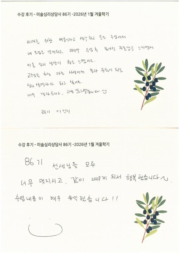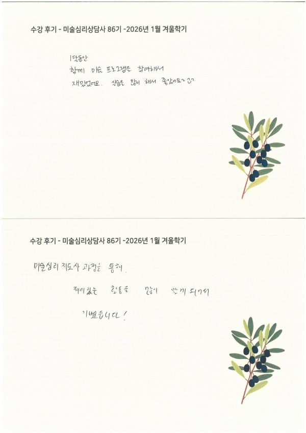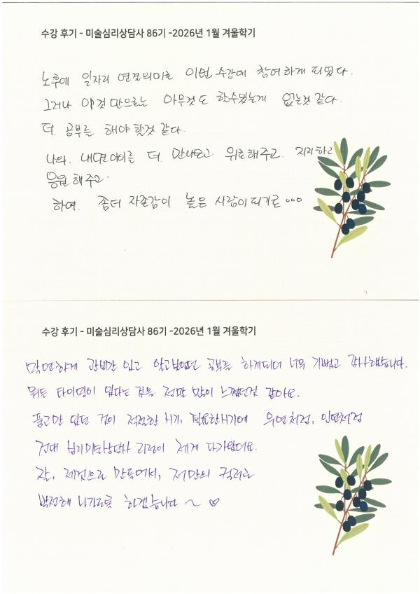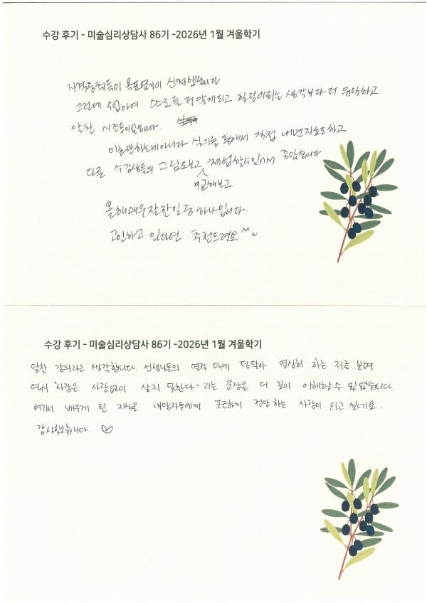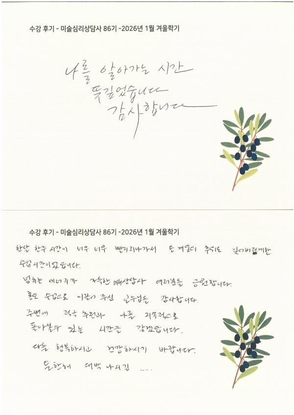 수강 후기 - 미술심리상담사 86기 -2026년 1월 겨울학기